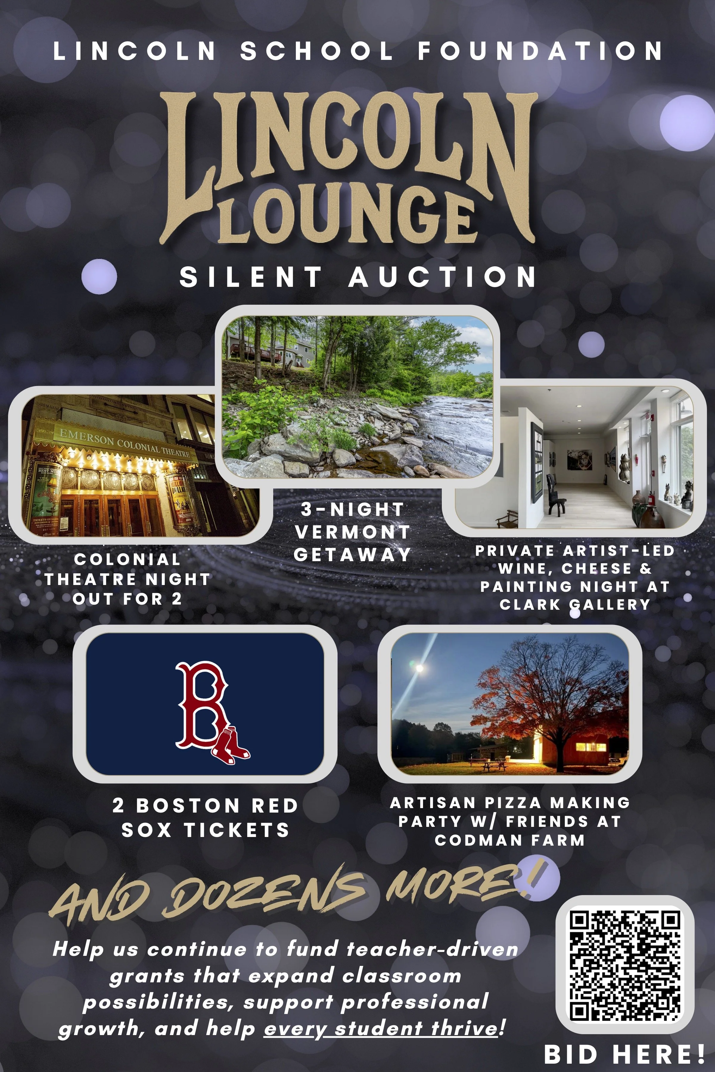 Canβt attend the event? You can still participate. Our Silent Auction is LIVE NOW and open through the end of Lincoln Lounge on March 7 at 10 pm. Bid on exclusive items including a 3-night Vermont getaway, Boston Red Sox tickets, a private wine and painting night at Clark Gallery, a Colonial Theatre night out, a pizza-making party at Codman Farm, and more.
