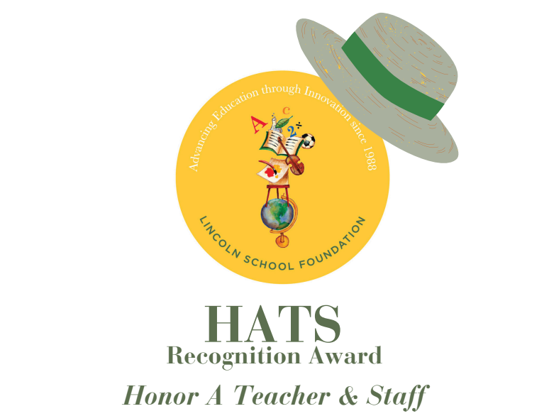 Honor the teachers and staff who make Lincoln shine. A HATS Award sends your honoree a personalized certificate and a fun-sized “Hat of Honor,” while your donation helps fund future teacher grants.